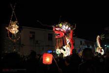 數(shù)百名壯實青年肩上扛著幾百米長的龍身,在引領者手中“龍珠”和指揮下,和著粗獷的鑼鼓節(jié)奏,引龍逗珠,逗龍游舞,連接龍身的木板在舞者肩上“嘎嘎”作響,場面相當精彩。不同的木板上有不同的裝飾物,通過這樣表達對神靈的敬畏。在我的家鄉(xiāng),板龍就叫龍燈。在舞龍燈的時候,小孩子也會湊熱鬧,在家長累的時候混入其中,稍微一兩個轉口空缺問題不會很大。龍燈會去不同的家里,去到的家里要準備紅包還有一些供奉龍的物品,希望龍能為自己家?guī)砗眠\,當龍燈來到的時候還要放鞭炮來迎接。舞龍燈真的非常熱鬧,從早到晚,來往的人絡繹不絕。