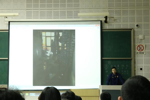 章一立結(jié)合章從業(yè)數(shù)十年的消防工作經(jīng)歷向同學(xué)們講述了火災(zāi)的殺傷力之大與損害力之強(qiáng),以及日常生活中可能存在的火災(zāi)安全隱患。
