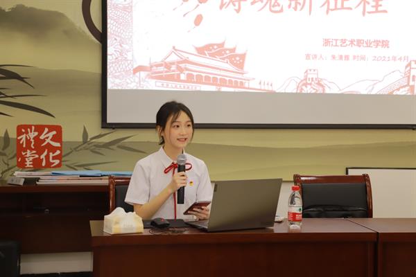 文化管理系兩位學生代表結(jié)合黨史學習教育中的所學、所思、所想作了主題宣講。19定向2班朱清雅的從紅船精神的起源、傳承、踐行三個方面生動講述了革命前輩們開天辟地、敢為人先的首創(chuàng)精神,立黨為公、忠誠為民的奉獻精神講述了《百年黨史鑄魂新征程》。從一代代中華兒女對紅船精神的傳承,結(jié)合系部的校園文化品牌活動開展引領(lǐng),詮釋了自己作為一名準鄉(xiāng)鎮(zhèn)文化員的責任擔當。20定向1班許愿結(jié)合系部特色文化活動“文物里的紅色故事”,介紹了《文物里的紅色故事——安吉姚家大院》。生動地講述了粟裕等一代革命先輩們在這里艱苦奮戰(zhàn)、履創(chuàng)戰(zhàn)果的三次反頑戰(zhàn)役的故事,帶領(lǐng)大家感受到革命先輩們滿腔的愛國主義精神,她表示,作為當代青年要胸懷遠大理想、練就過硬本領(lǐng),主動接過時代的接力棒,為保護和傳承中華紅色精神作出表率。