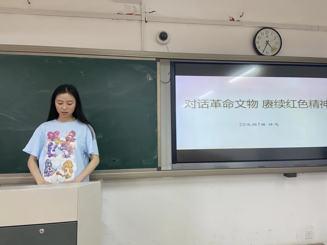 20定向1班許愿以“對(duì)話歷史文物 賡續(xù)紅色精神”為主題,帶領(lǐng)大家走進(jìn)安吉姚家大院,向我們重現(xiàn)了粟裕等一代革命先輩們?cè)谶@里艱苦奮戰(zhàn)、履創(chuàng)戰(zhàn)果的三次反頑戰(zhàn)役。她結(jié)合自身實(shí)際情況,談到作為一名未來(lái)的鄉(xiāng)鎮(zhèn)文化員,應(yīng)將紅色文化孕育在五彩斑斕的群眾文化活動(dòng)之中,做一名出色的傳播者,讓紅色文化在鄉(xiāng)村振興中提供源源不斷的動(dòng)力。