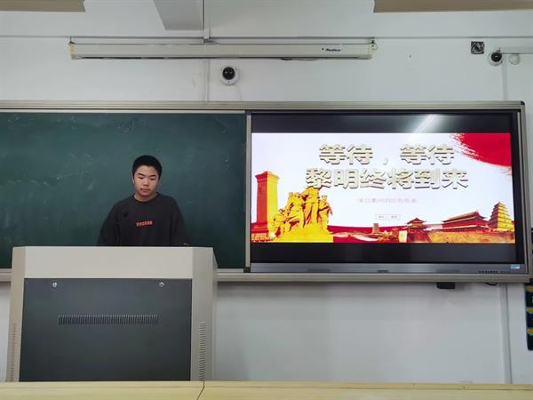 20定向2班姜歌通過(guò)“等待,等待,黎明就要到來(lái)”為主題,從《致林維雁》這首詩(shī)為切入點(diǎn),聲情并茂地講述了身為女兒身的林維雁為衢州解放而犧牲。正是共產(chǎn)黨人的血肉與生命,換來(lái)了我們的美好生活。作為未來(lái)的鄉(xiāng)鎮(zhèn)文化員,他指出,要向烈士學(xué)習(xí)敢作敢為、敢想敢拼敢吃苦的精神,為基層文化獻(xiàn)出自己的綿薄之力,振興家鄉(xiāng)文化。