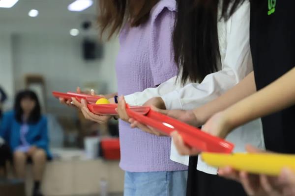 最后,通過“珠行萬里”游戲,鍛煉了同學(xué)們的團(tuán)隊(duì)合作能力,以銜接續(xù)力的方式將圓球完美的傳送到杯子里。大家通過一次次協(xié)作嘗試,逐漸默契十足,獲得越來越棒的成績(jī)。活動(dòng)結(jié)束后,同學(xué)們還意猶未盡。
