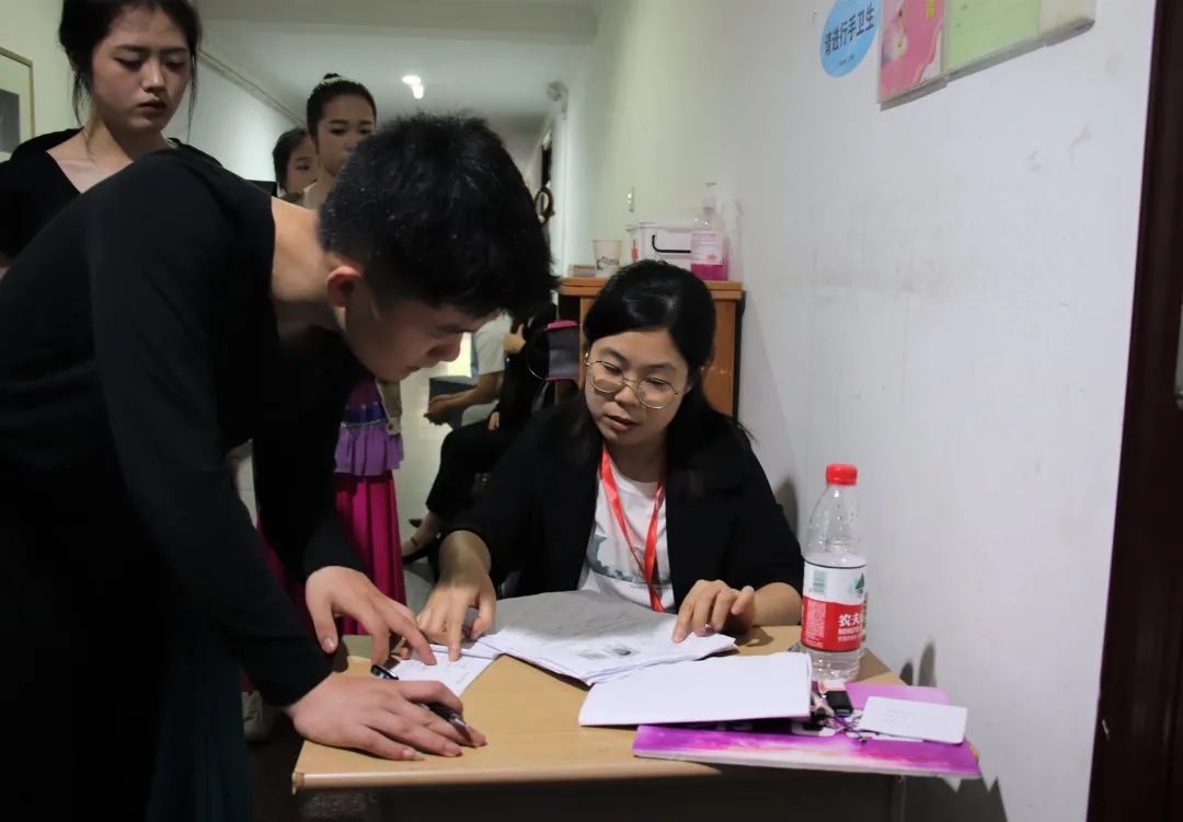 考試當天,志愿者們根據工作安排,為考生分發(fā)號碼牌、收取考生們的伴奏音樂、叫號、指導考生進場要求等等,大家在各自的崗位上積極主動、盡職盡責,確保了來自全省17個縣(市、區(qū))的238名考生順利完成專業(yè)素質加試。