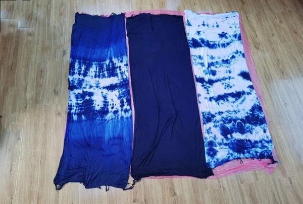 扎染古稱扎纈、絞纈、夾纈和染纈,是漢族民間傳統(tǒng)染色工藝,在我國已有數(shù)千年的歷史,是我國古代勞動(dòng)人民的智慧結(jié)晶。扎染分為扎結(jié)和染色兩部分,通過紗、線、繩等工具,對(duì)織物進(jìn)行扎、縫、綴、夾等多種形式組合后進(jìn)行染色,形成一定的圖案花紋,織物在染色時(shí)部分結(jié)扎起來使之不能著色,通過這種方法,每次的花樣不可復(fù)制,每次都會(huì)讓人驚艷不已。在成為成品之前,答案只能留待拆結(jié)時(shí)揭曉。它的獨(dú)特,是因?yàn)槭郎现淮艘患?/p>
