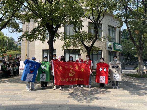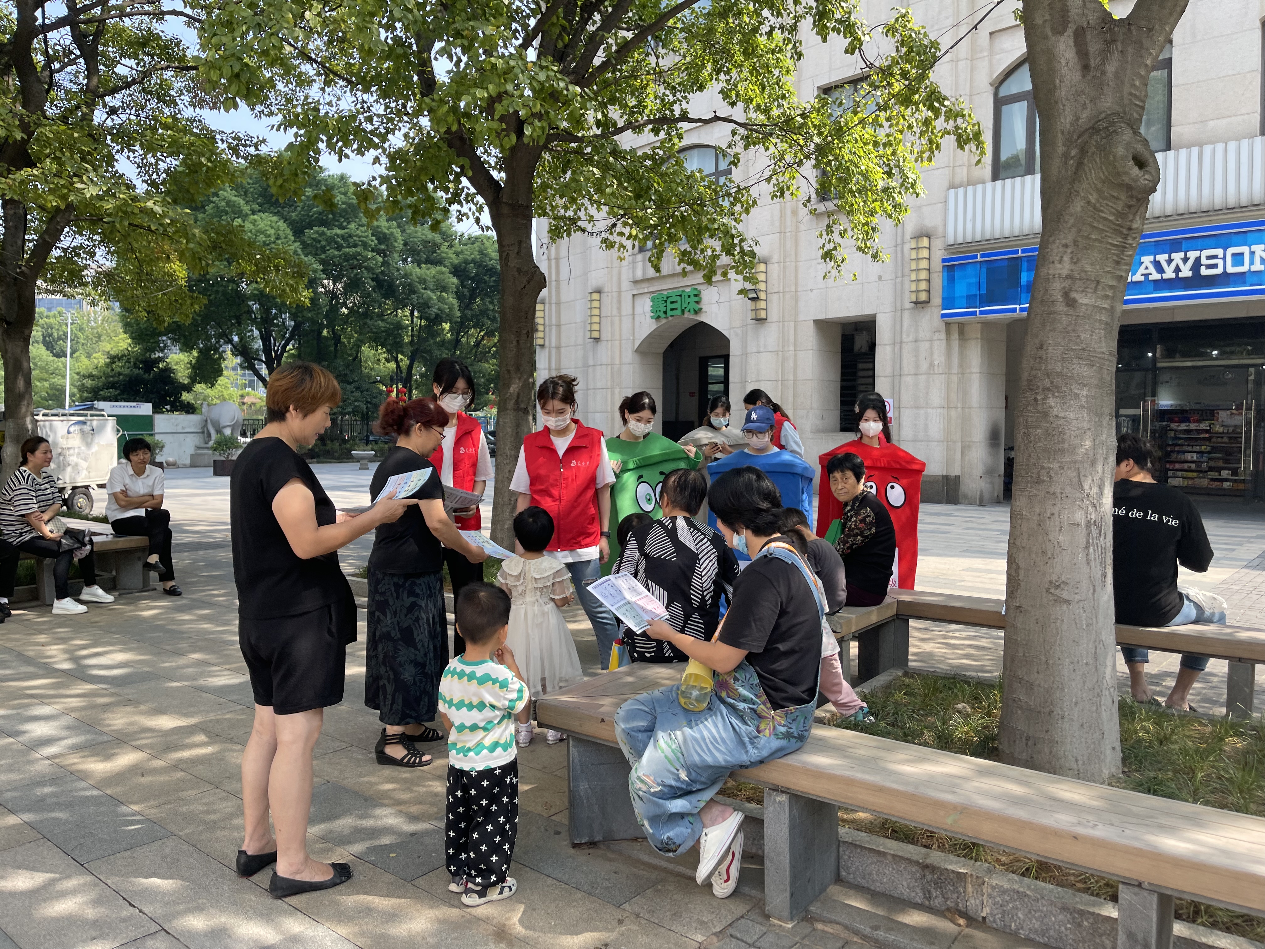 為創(chuàng)建更美的家園,藝小匠們在東信社區(qū)向社區(qū)居民宣傳“垃圾分類”小知識。