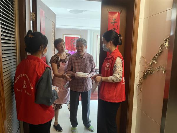 藝小匠們與東信社區(qū)工作人員一同為老人們送上一份新鮮的、熱氣騰騰的“甜蜜滋味”。考慮到老年人的牙口和身體狀況,這些重陽糕都是“私人訂制”的少糖軟糯款。當(dāng)一份份重陽糕敬送到老人手里時(shí),他們眼里滿是感動和喜悅,臉上洋溢著幸福的笑容。小小的重陽糕,甜甜的糯米香,讓溫暖從舌尖流淌到心間。