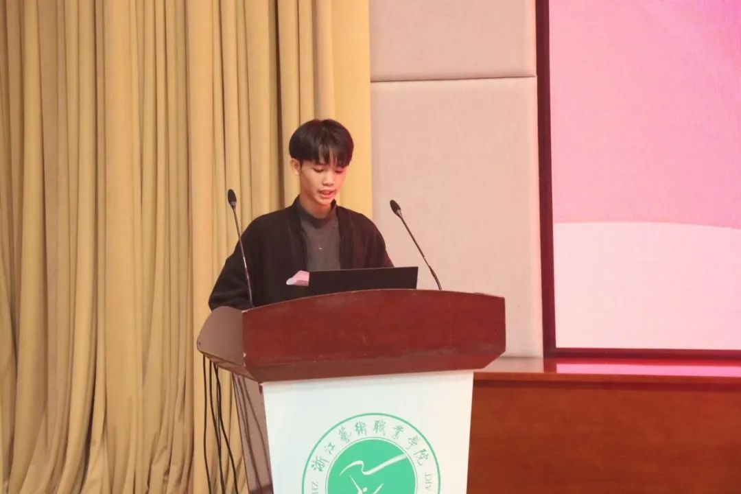 周妍同學(xué)以自己生長(zhǎng)地為切入點(diǎn),講述了家鄉(xiāng)百姓在脫貧攻堅(jiān)與鄉(xiāng)村振興的支持下,通過(guò)不斷地努力過(guò)上了好日子。她認(rèn)為“國(guó)是千萬(wàn)家!我們中華兒女擁有同一個(gè)夢(mèng)想,一個(gè)民族復(fù)興的夢(mèng)想。”而身為浙藝學(xué)子,自當(dāng)勇敢擔(dān)負(fù)起時(shí)代賦予的使命與重任,不斷鞭策自己,散發(fā)螢火微光,凝聚奮進(jìn)力量,照亮民族復(fù)興夢(mèng)。