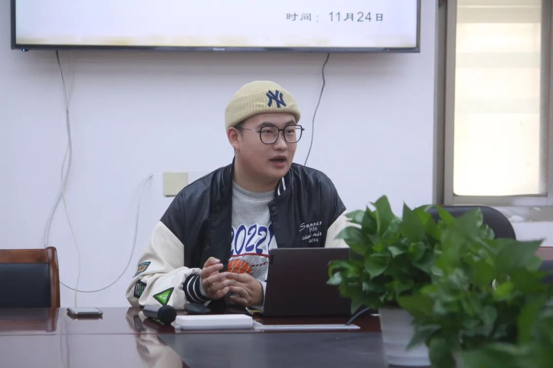 會(huì)議伊始,張峻偉首先對(duì)新加入的記者團(tuán)成員表示歡迎,并向大家介紹記者團(tuán)的部門(mén)設(shè)置和職責(zé)分工,手工藝學(xué)院學(xué)生記者團(tuán)主要分為文字編輯組、攝影編輯組、美術(shù)編輯組、視頻剪輯組四個(gè)分組,各司其職、互相配合。張峻偉分享加入記者團(tuán)時(shí)的感受和成長(zhǎng)歷程,以及在團(tuán)隊(duì)管理組織建設(shè)中遇到的問(wèn)題和經(jīng)驗(yàn),鼓勵(lì)成員們靜下心來(lái)多多參與實(shí)踐活動(dòng),練就一雙發(fā)現(xiàn)美的眼睛。