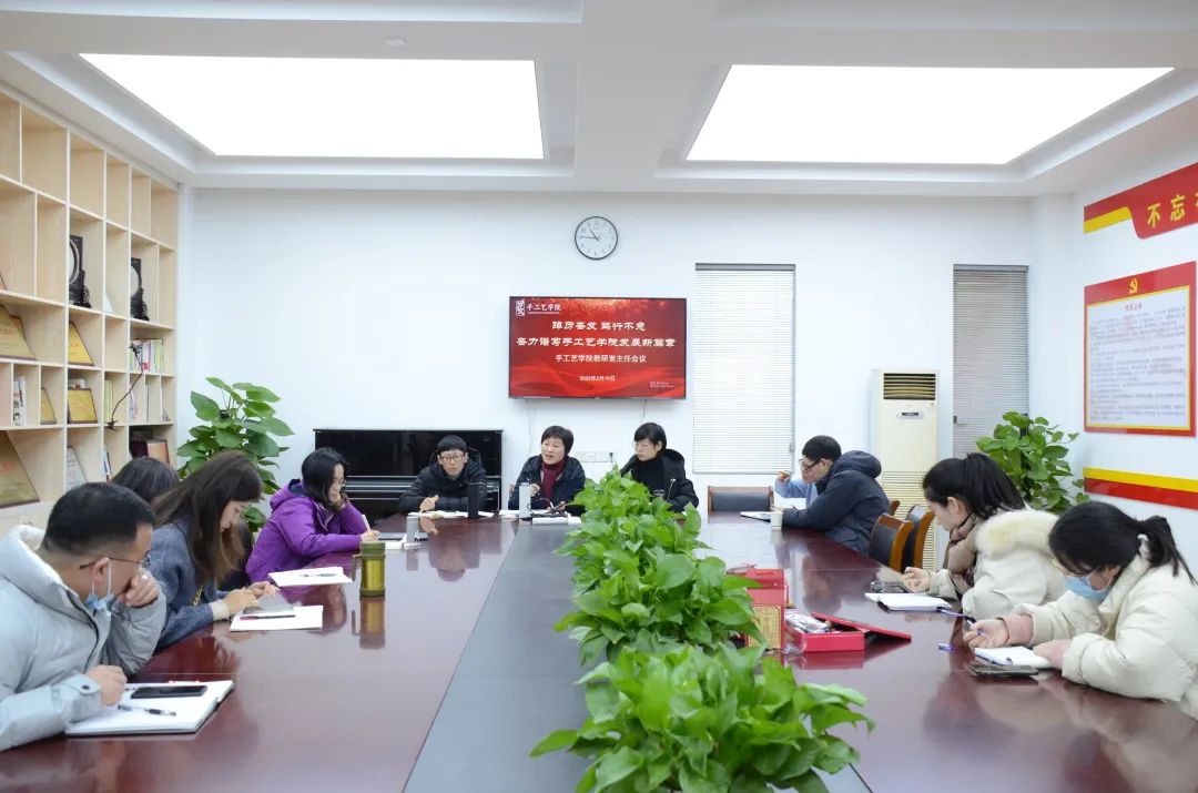 手工藝學(xué)院召開新學(xué)期教研室主任會議,手工藝學(xué)院領(lǐng)導(dǎo)班子與各教研室主任參會。會議以高標(biāo)準(zhǔn)謀劃并推進(jìn)學(xué)校“十四五”事業(yè)發(fā)展規(guī)劃為目標(biāo),緊扣學(xué)院“十個一”各項工作重點(diǎn),圍繞提升專業(yè)內(nèi)涵建設(shè)、拓展實(shí)踐教學(xué)基地、提升師資隊伍梯隊建設(shè)、拓寬教學(xué)成果展示渠道等方面開展整體部署。