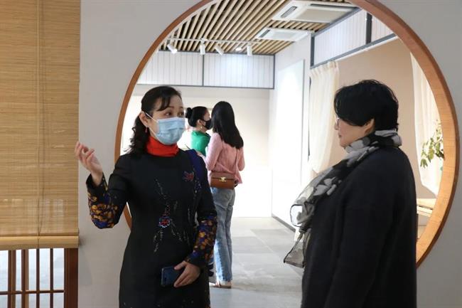 開展第一天,浙江藝術(shù)職業(yè)學(xué)院院長(zhǎng)、黨委副書記黃杭娟到場(chǎng)觀展,她對(duì)展覽作品的豐富性及價(jià)值給予了高度評(píng)價(jià),同時(shí)對(duì)展會(huì)引入人流、擴(kuò)大宣傳等提出要求。一是要緊跟數(shù)字化潮流,跑出宣傳“加速度”。要將作品繪畫工藝、構(gòu)造細(xì)節(jié)錄入二維碼中,“活化”靜態(tài)的文字介紹,增加觀展直觀性、趣味性。二是要豐富展覽形式,增強(qiáng)展覽交互性,拓展展覽形式,增設(shè)會(huì)展體驗(yàn)課,讓觀展人看展期間接受藝術(shù)熏陶,感受文化魅力。三是要加強(qiáng)展覽組織管理,推進(jìn)展覽高質(zhì)量發(fā)展,補(bǔ)充配備專業(yè)展覽組織人員,有計(jì)劃性、可持續(xù)性地推進(jìn)展覽組織工作。