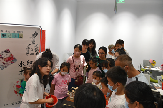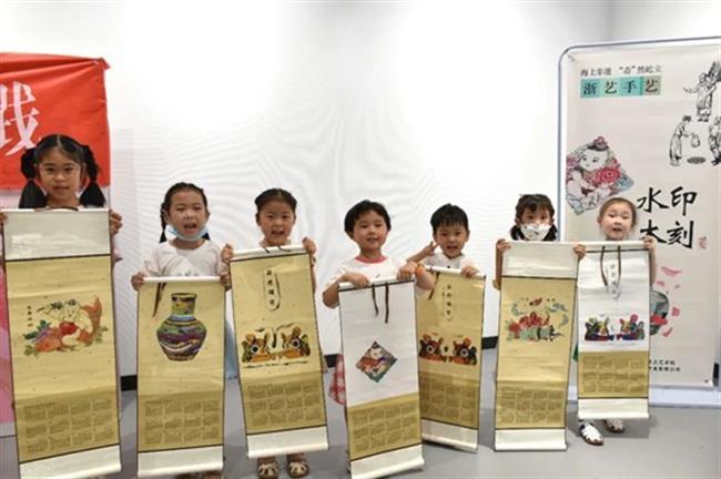 木刻韶年,水印芳華。手工藝學(xué)子現(xiàn)場(chǎng)示范繪、刻、印等一系列制作流程,將宣紙、木板和顏料巧妙融合,一幅幅精美的水印木刻版畫躍然紙上,讓孩子們連連感嘆水印木刻的神奇。