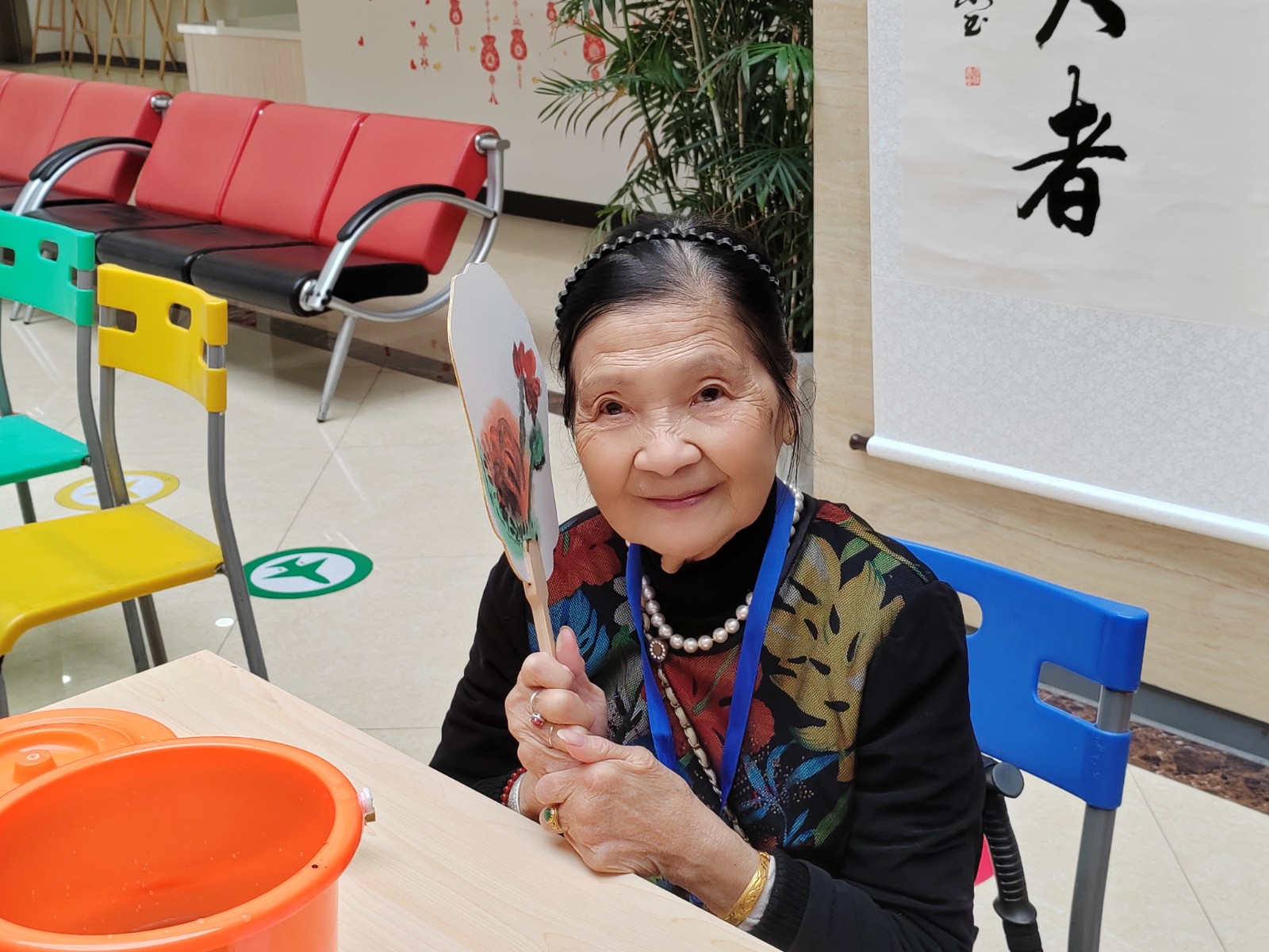 團(tuán)扇繪制體驗(yàn)活動(dòng)中,老人們發(fā)揮了書(shū)法、國(guó)畫(huà)的特長(zhǎng),紛紛繪制出創(chuàng)意滿滿、意蘊(yùn)豐厚的扇面畫(huà)作品。