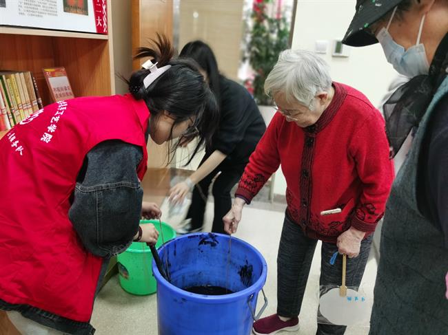 11月8日,手工藝學(xué)院師生團(tuán)隊(duì)走進(jìn)養(yǎng)老院,開(kāi)展了以“匠心非遺,文化養(yǎng)老”為主題的非遺活態(tài)體驗(yàn)活動(dòng)。手工藝學(xué)院學(xué)子們開(kāi)展了水印木刻、扎染和團(tuán)扇繪制等活動(dòng),在中華優(yōu)秀傳統(tǒng)文化中進(jìn)一步充實(shí)老年人的精神文化生活,增強(qiáng)他們的幸福感和滿足感。