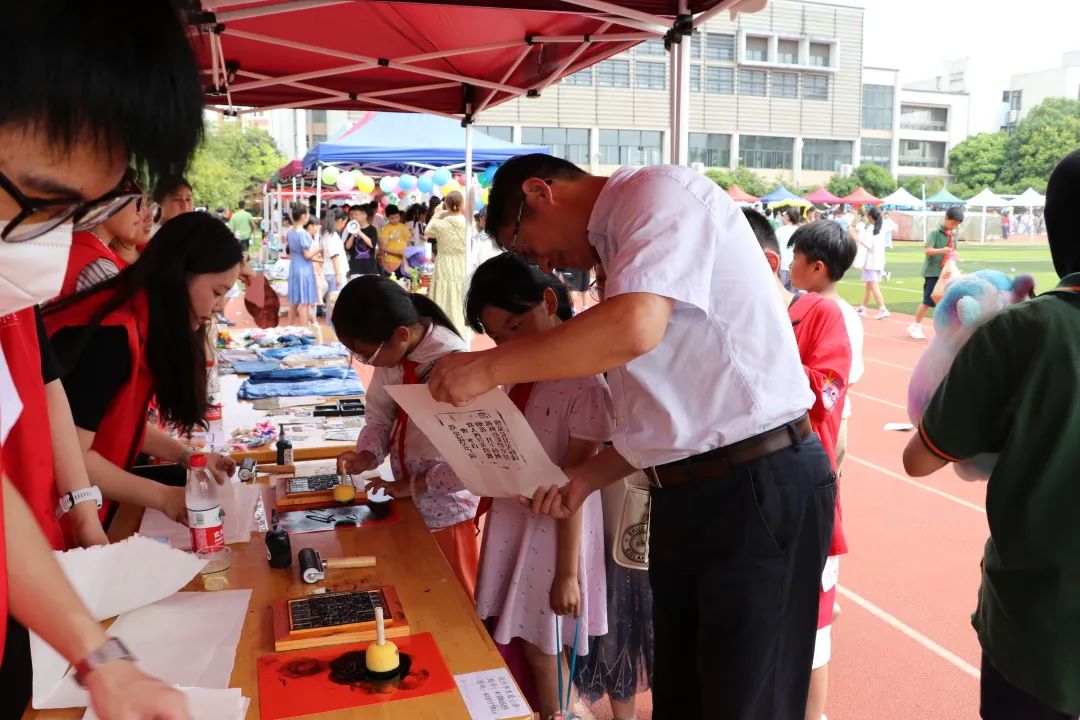 隨后準(zhǔn)確鋪紙,一次定位,再用鬃刷在紙上順次點(diǎn)按,待紙張泛出均勻墨跡,揭開宣紙,一張清秀而生動(dòng)的活字印刷品就展現(xiàn)在大家的面前。撫觸紙上淡淡的浮突,那是活字印刷留下的獨(dú)特壓痕,讓古詩多了一份歷史的韻味。 感受完古色古香的活字印刷,這還有一個(gè)藍(lán)白藝術(shù)交織的扎染小攤。以扎染的手法制作出的包包和雅致的耳環(huán)與方巾,惟妙惟肖的小玩偶等等,無不散發(fā)著獨(dú)具匠心的美感。藝小匠們將自己親手制作的精美文創(chuàng)小商品整齊擺開,路過的老師和孩子們紛紛停下腳步來到攤位上選購物品。 在整個(gè)過程中,小朋友們近距離接觸非遺、了解非遺、體驗(yàn)非遺,讓非遺文化不斷融入孩子學(xué)習(xí)生活,促進(jìn)傳統(tǒng)文化在傳承創(chuàng)新中煥發(fā)新的活力。