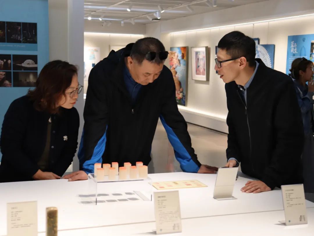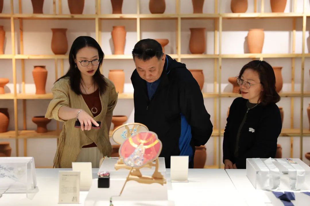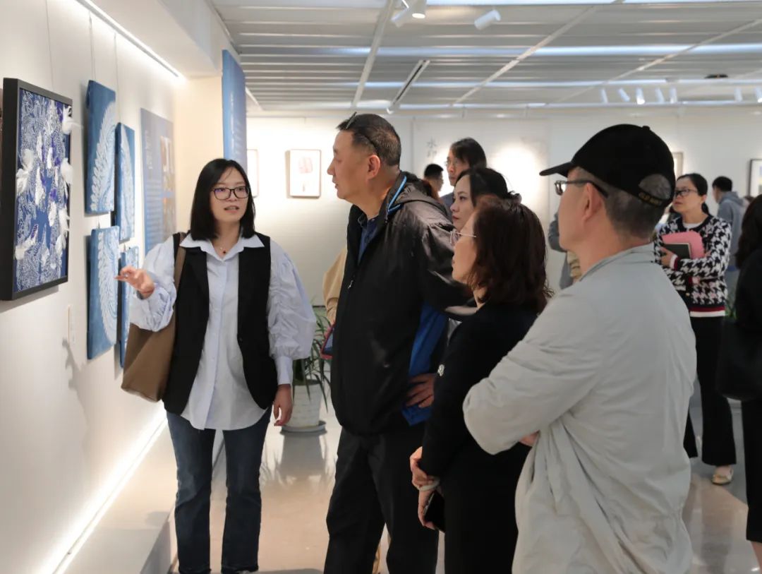 調(diào)研伊始,手工藝學(xué)院民族傳統(tǒng)技藝研究所負(fù)責(zé)人陳沁杰、民族傳統(tǒng)技藝專(zhuān)業(yè)教研室主任胡錦霞、文物修復(fù)與保護(hù)專(zhuān)業(yè)教研室主任潘文娟、專(zhuān)業(yè)教師江杰、展示藝術(shù)設(shè)計(jì)專(zhuān)業(yè)教師孫藝萌等引導(dǎo)大家參觀了學(xué)院“匠心守藝”教學(xué)成果展,從書(shū)畫(huà)裝裱、古籍修復(fù)、古陶瓷修復(fù)、青瓷燒造、金工首飾、刺繡工藝、水印木刻、石雕篆刻、傳統(tǒng)印染、文創(chuàng)產(chǎn)品設(shè)計(jì)等方面為調(diào)研團(tuán)隊(duì)闡釋了手工藝學(xué)院的工藝美學(xué)思想。