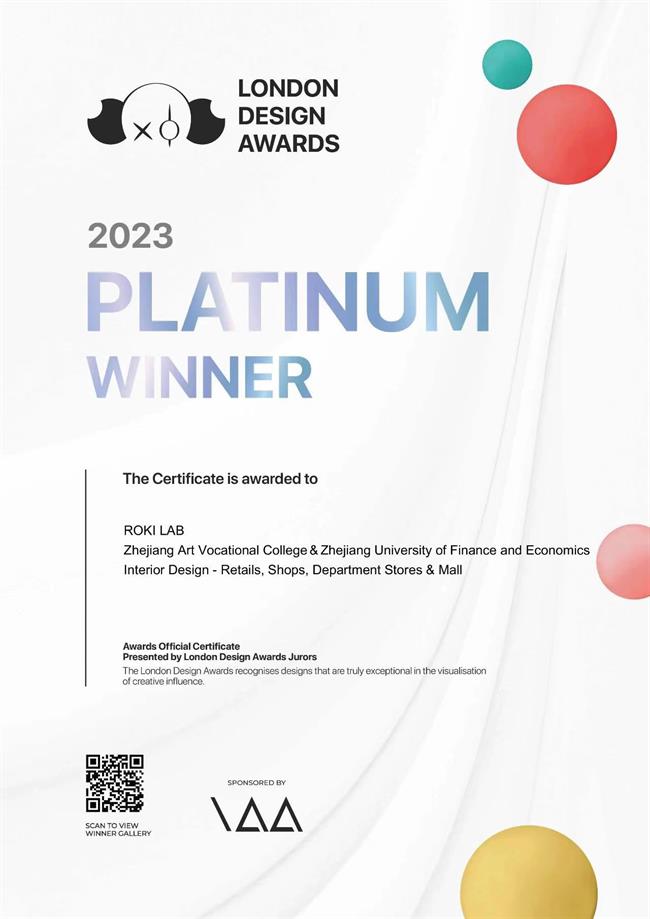 該作品榮獲2023倫敦國際設(shè)計室內(nèi)設(shè)計:零售,商店,百貨公司和購物中心類鉑金大獎。倫敦國際設(shè)計獎(London Design Awards)作為國際獎項協(xié)會(IAA)旗下的全球性獎項賽事之一,該獎項面向建筑、室內(nèi)、產(chǎn)品、包裝、視覺傳達、服務(wù)、用戶體驗等廣泛領(lǐng)域征集設(shè)計作品,致力于表彰在視覺化方面具有創(chuàng)意影響力的卓越設(shè)計。