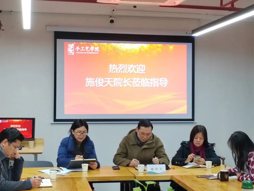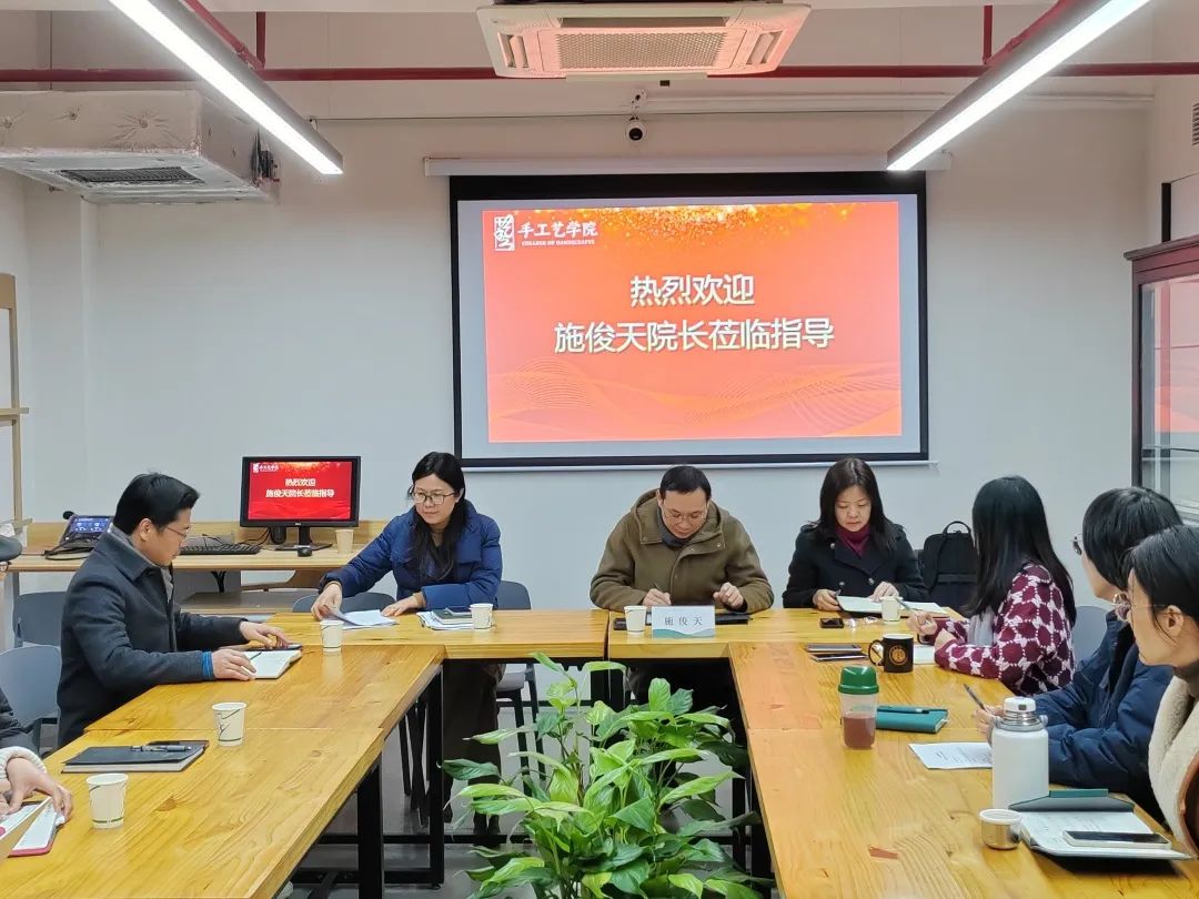 在學(xué)校“雙高”建設(shè)關(guān)鍵期和手工藝學(xué)院創(chuàng)新改革、快速發(fā)展的新規(guī)劃期,1月3日上午,院長、黨委副書記施俊天一行蒞臨我院視察和指導(dǎo),調(diào)研手工藝學(xué)院專業(yè)建設(shè)發(fā)展。手工藝學(xué)院領(lǐng)導(dǎo)班子、辦公室、教師代表參會。
