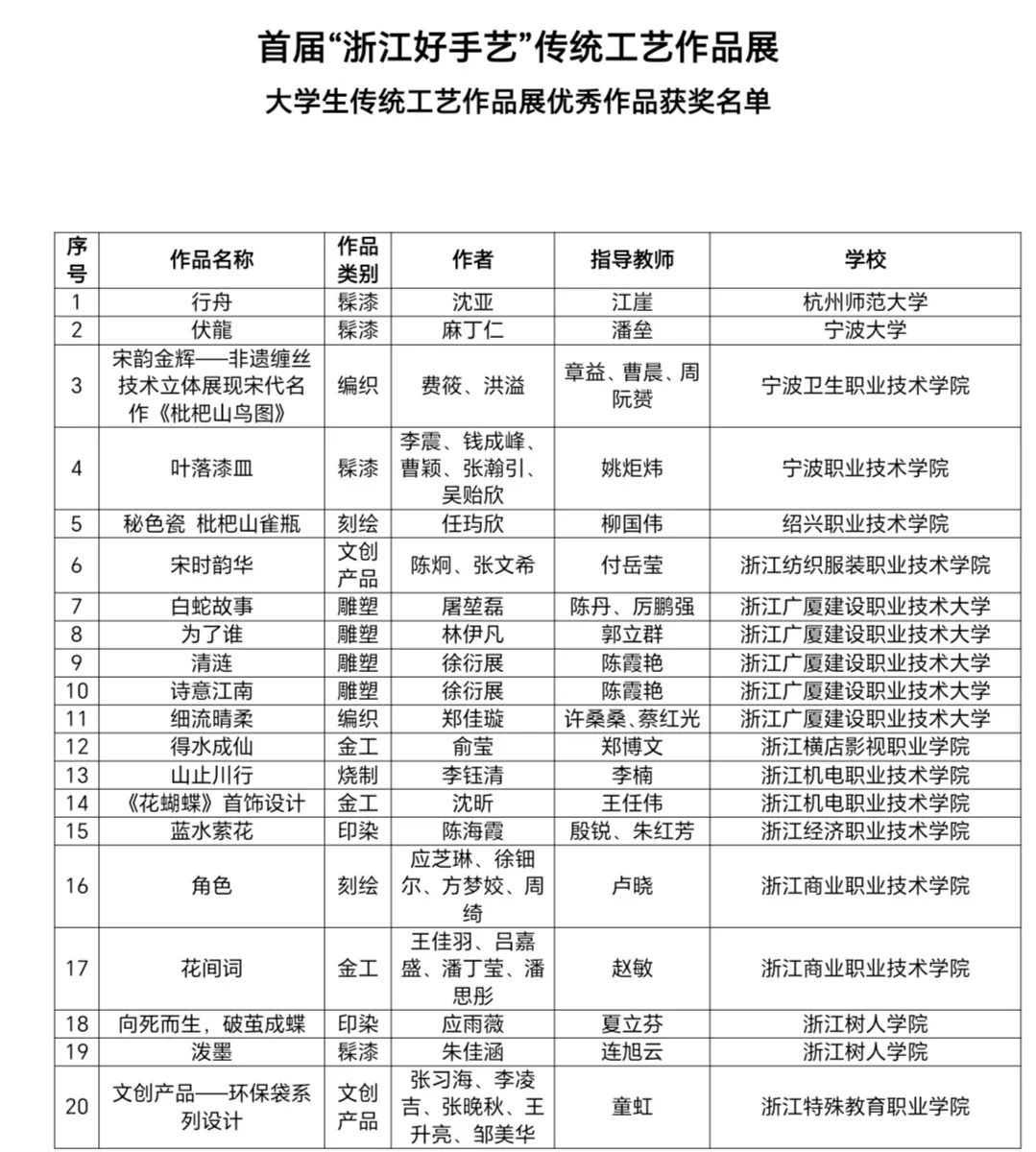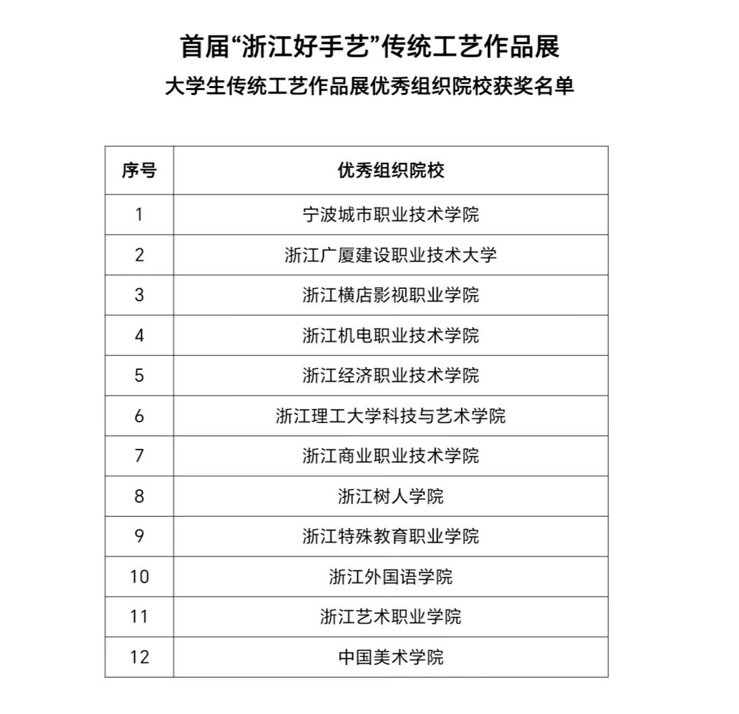 附件2.首屆“浙江好手藝”傳統工藝作品展——大學生傳統工藝作品展優(yōu)秀組織院校獲獎名單