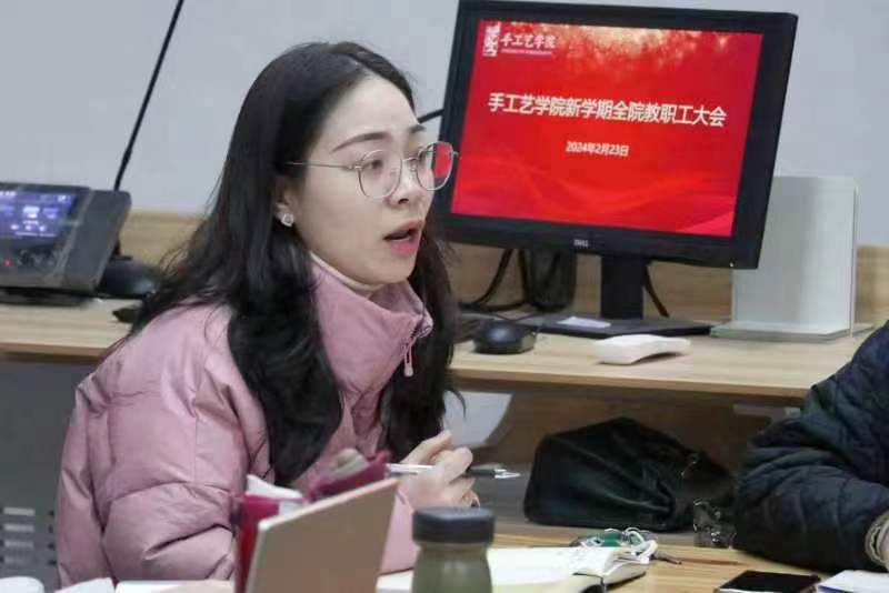 全體教職工會(huì)議由手工藝學(xué)院黨總支書記鐘黎主持。會(huì)議首先由教研室活動(dòng)開啟,各教研室針對(duì)教學(xué)研討內(nèi)容和全年重點(diǎn)工作任務(wù)進(jìn)行發(fā)言,探討手工藝教學(xué)的新趨勢(shì)、新挑戰(zhàn)和新機(jī)遇。