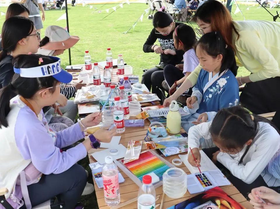 下午,展示藝術(shù)設(shè)計專業(yè)教師黃茜為小朋友們準(zhǔn)備了一場別開生面的博物插畫課程,22展示的學(xué)生利用專業(yè)所學(xué),一對一引導(dǎo)孩子們在自然界中仔細觀察,放大事物最本真的美,用色彩和線條,讓春天留在筆尖與紙間。小朋友們洋溢著燦爛的笑容,以筆為媒,體驗了一把當(dāng)小畫家的樂趣,創(chuàng)造出屬于他們的繽紛世界。