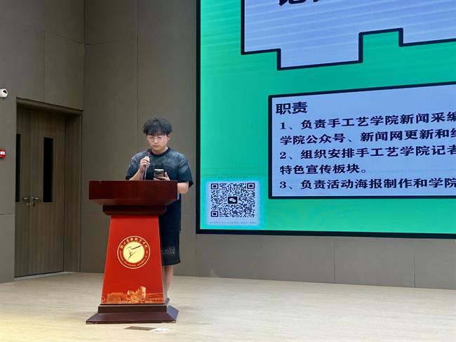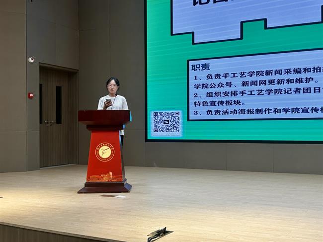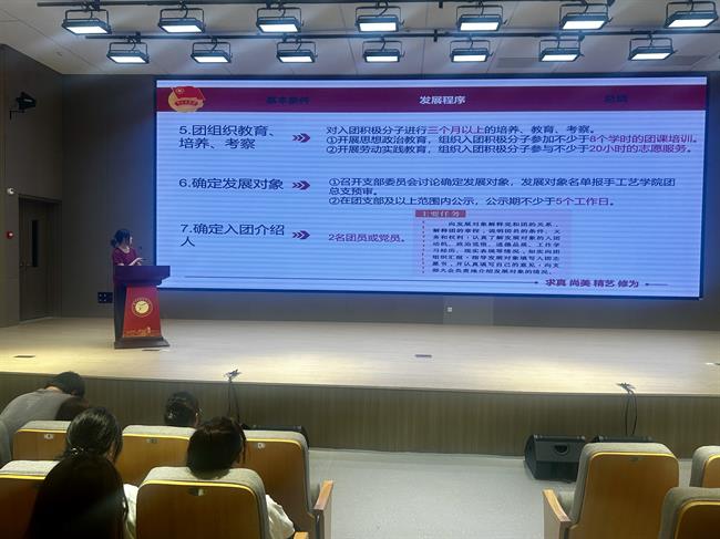 輔導(dǎo)員方雯靜詳細(xì)講解團員發(fā)展工作要點,鼓勵廣大青年用實際行動向團組織靠攏,當(dāng)好新時代黨的助手和后備軍。手工藝學(xué)院團總支學(xué)生會成員們,現(xiàn)場動員團學(xué)部門招新,為新生搭建鍛煉能力、施展才藝的平臺。