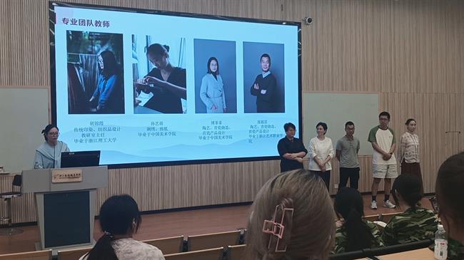 文物修復(fù)與保護教研室主任林維業(yè),文化創(chuàng)意與策劃教研室主任金美意、民族傳統(tǒng)技藝教研室主任胡錦霞、展示藝術(shù)設(shè)計、產(chǎn)品藝術(shù)設(shè)計專業(yè)帶頭人姜磊、八位新生班主任以及手工藝學(xué)院行政團隊集體亮相,上臺表達(dá)對新生的歡迎與期望,鼓勵新生們在大學(xué)生活中努力學(xué)習(xí)、珍惜時光、培養(yǎng)團隊精神、鍛造匠心技藝,在專業(yè)學(xué)習(xí)中錨準(zhǔn)個人定位和發(fā)展道路。