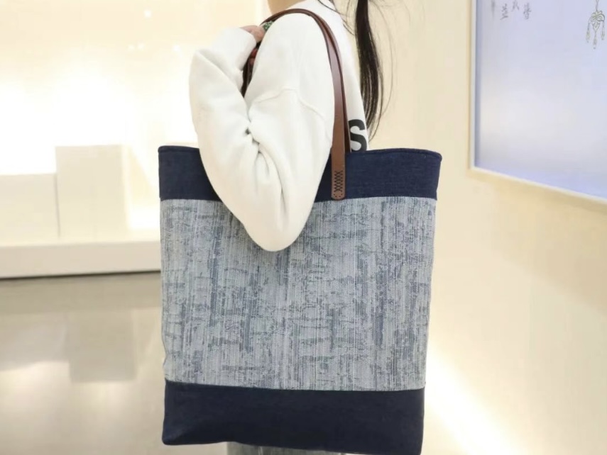 牛仔面料提升手提包質(zhì)感,拼布款式簡約大氣,日常出行與上下班便捷舒適。包身采用手縫針法加固,牢固精致。