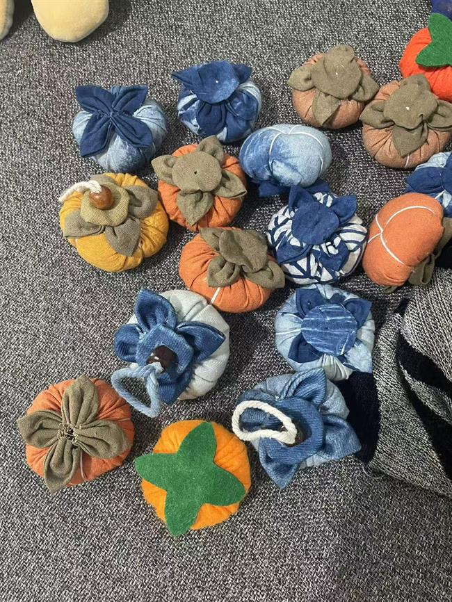 柿子寓意“事事如意、好事連連”,小柿子內(nèi)充棉花與艾草,散發(fā)淡淡清香,從染布到手工縫制,配色獨特。