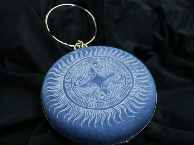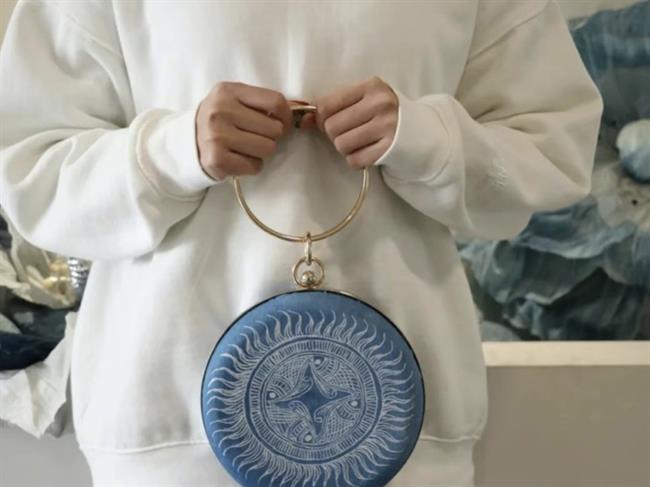 口金包為非遺文化,有百年歷史,寓意富貴、長生與美好。其裝飾圖案鐘鼓紋,搭配金屬扣環(huán)與細(xì)膩布料,采用蠟染,彰顯傳統(tǒng)文化里的吉祥寓意。
