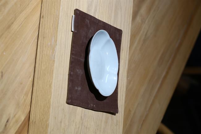 這套喝茶小杯,以高鐵泥料制成,施青釉后呈灰青質(zhì)感,黑色胎體于釉下若隱若現(xiàn),很適合偏愛灰色調(diào)的顧客。底部小托采用葵口設(shè)計,為產(chǎn)品增添優(yōu)雅美感