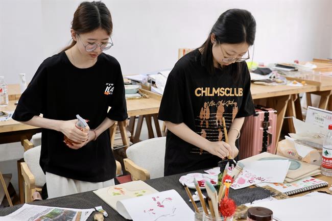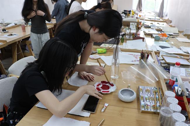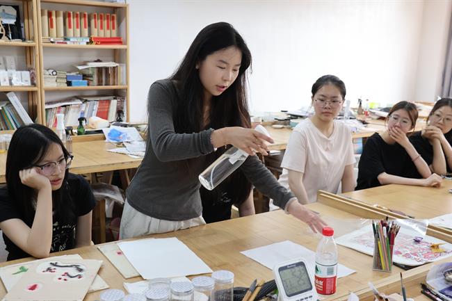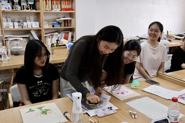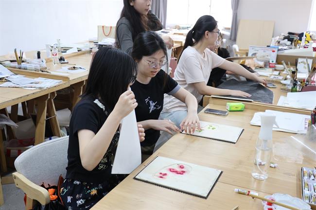 歡聲笑語在畫室流淌,同學(xué)們專注創(chuàng)作,水墨拓印的瞬間,壓力悄然消散,心靈在藝術(shù)創(chuàng)作中得到治愈與放松。