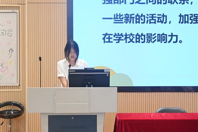 手工藝學(xué)院第三屆學(xué)生會(huì)主席團(tuán)成員吳佳敏作第三屆團(tuán)總支、學(xué)生會(huì)委員會(huì)工作報(bào)告,全面回顧過去一年,手工藝學(xué)院在學(xué)生思想引領(lǐng)、組織建設(shè)、校園文化、志愿服務(wù)等方面的工作成效。