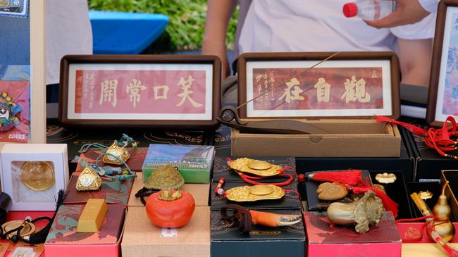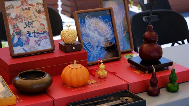 在熱烈的掌聲中,楊建武敲響開市鑼聲,“浙藝好市”正式拉開帷幕。來自浙江文化空間發(fā)展有限公司、浙江華云文化集團(tuán)(有意思書房)、浙江省工藝品進(jìn)出口有限公司(省工藝美術(shù)研究院)、杭州曉風(fēng)圖書有限公司等知名文化企業(yè)的文創(chuàng)作品、浙藝手藝作品紛紛亮相:復(fù)刻文物元素的雅致飾品、融合傳統(tǒng)工藝的數(shù)字藏品、古籍紋樣重構(gòu)的創(chuàng)意文具……多元載體與創(chuàng)新表達(dá)交相輝映,生動(dòng)詮釋著“文物+創(chuàng)意”的無限可能,歷史文脈在當(dāng)代生活的煙火氣中綻放出鮮活生命力。