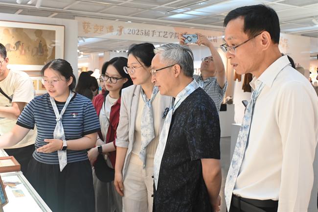 當(dāng)天,“藝起傳承——2025屆手工藝學(xué)院畢業(yè)生作品展”同步舉辦,作品展以書畫裝裱、古籍修復(fù)、陶瓷修復(fù)、古書畫仿制、青瓷燒造、傳統(tǒng)印染、水印木刻、刺繡工藝、博物插畫、文創(chuàng)產(chǎn)品設(shè)計(jì)等多元藝術(shù)形式,全面展示了文物修復(fù)與保護(hù)、民族傳統(tǒng)技藝、文化創(chuàng)意與策劃、展示藝術(shù)設(shè)計(jì)四個(gè)專業(yè)的豐碩教學(xué)成果和我院傳統(tǒng)手工藝的深厚底蘊(yùn)。