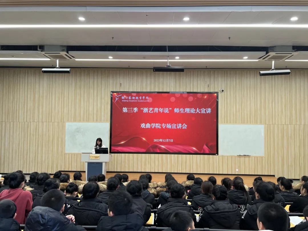 12月7日中午,由校黨委宣傳部、馬克思主義學(xué)院、校團(tuán)委聯(lián)合主辦的第三季浙藝青年說師生理論大宣講戲曲學(xué)院專場(chǎng)順利舉行。戲曲學(xué)院黨總支書記謝志勇和全體學(xué)生參加,戲曲學(xué)院團(tuán)總支書記余鑫雨主持。