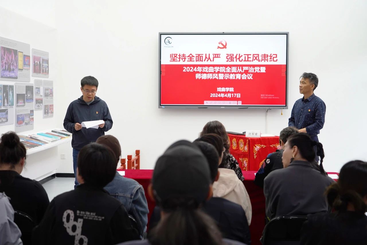 戲曲學院召開2024年度全面從嚴治黨暨師德師風警示教育會議。校黨委委員、紀委書記沈軍甫出席會議,學院黨總支書記謝志勇主持,黨政班子成員、全體教職工