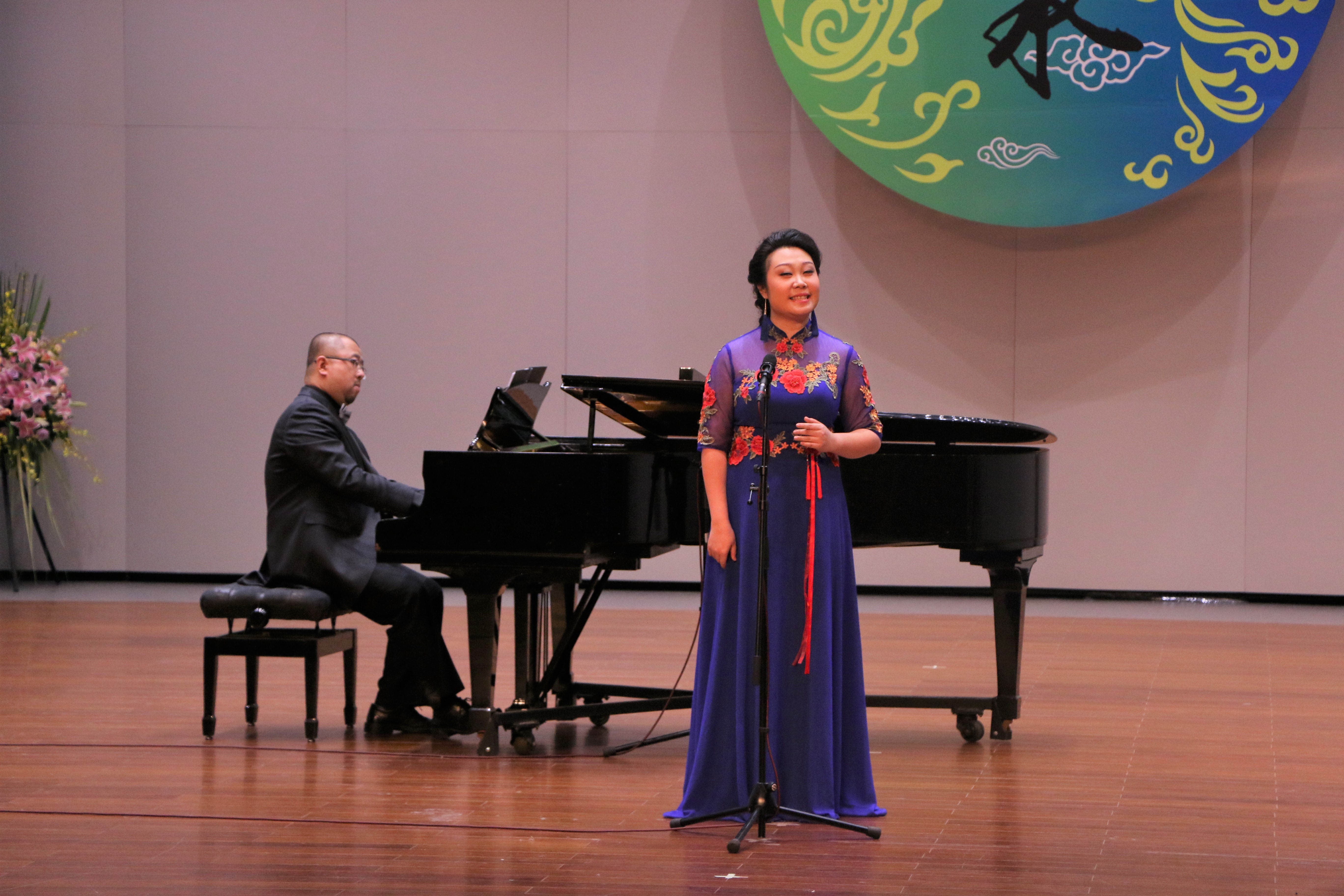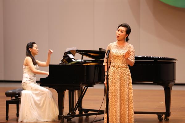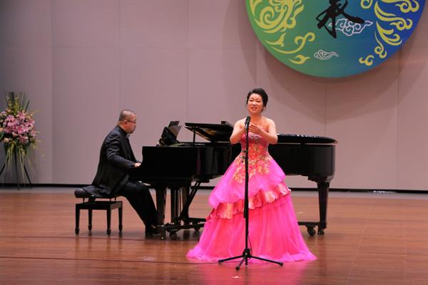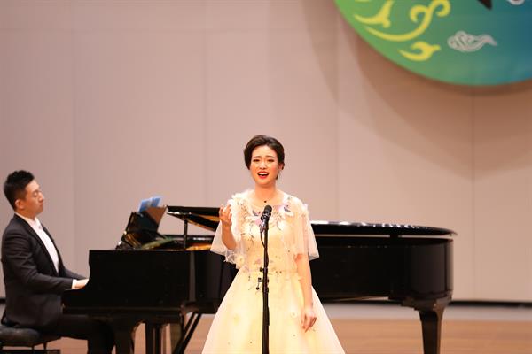 胡素銀和現(xiàn)場聲樂學(xué)生合唱的《我的祖國》為音樂會開場。越劇《梁山伯與祝英臺》選段《十八相送》,由87級越劇班陳愛菊、周艷演繹,就像婉約清麗的江南之水,曲調(diào)柔美深情,是胡素銀從教的第一份紀(jì)念。浙藝原創(chuàng)音樂劇《五姑娘》選段《愛到永遠(yuǎn)》,由96級音舞班錢思舒和音樂系黨總支專職副書記謝志勇演繹,“想過多少年,盼過多少年”熟悉的唱段令人陶醉;樂清民歌《對鳥》曲調(diào)歡快爽朗,節(jié)奏自由舒展,由00級音樂表演班馮斯凡演繹;蘇東坡的《飲湖上初晴后雨》由93級群文班畬族學(xué)生雷瑩完成,經(jīng)典詩詞吟唱起來別有一番韻味;純樸生動的陜北民歌《蘭花花》,委婉凄愴的河北民歌《小白菜》,以及《哈達(dá)似的白云》分別由04級聲樂五年一貫班胡韻、浙江音樂學(xué)院賈舒韻和92級社音班袁春演唱,不同風(fēng)格的民歌展現(xiàn)了不一樣的情感。96級音樂班劉偉帶來的內(nèi)蒙民歌《莫尼山》引發(fā)了現(xiàn)場小高潮,歌聲正如歌詞所唱“高入云端”,訴說著大自然的詩篇。