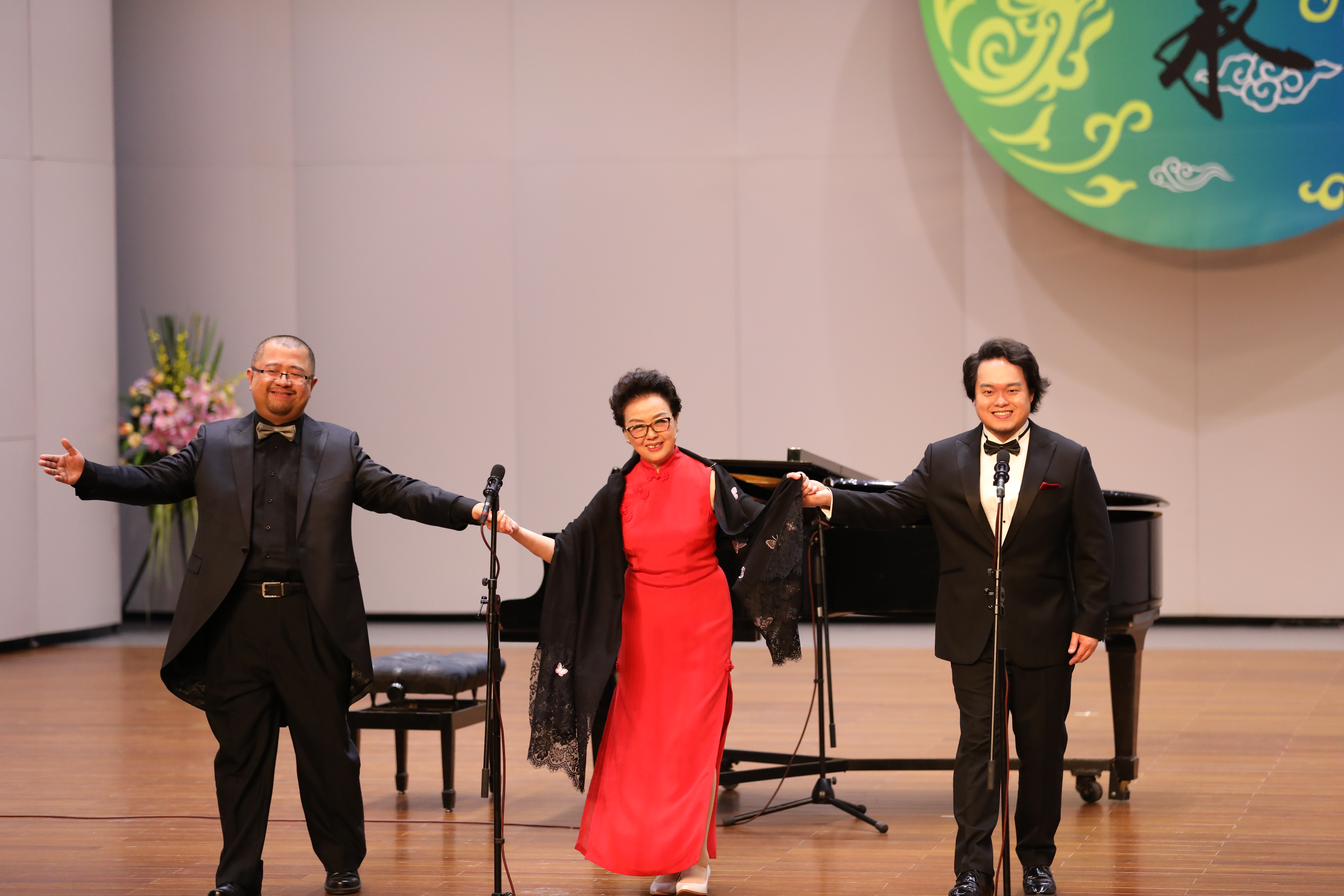 當(dāng)晚浙江音樂廳大堂變成了花的海洋,花籃擺成了一條“花毯”,滿眼望去都是祝胡素銀音樂大講堂暨師生音樂會圓滿成功。胡素銀為國家一級演員,第八屆、九屆浙江省政協(xié)委員,中國音樂家協(xié)會會員,浙江省音樂家協(xié)會聲樂專業(yè)委員會顧問。曾是民盟浙江省委會委員,2005年11月榮獲文化部“第七屆區(qū)永熙優(yōu)秀音樂教育獎”。對民族音樂文化和音樂表演藝術(shù)的執(zhí)著,是70多歲的胡素銀一直堅(jiān)守與傳承的。音樂會伊始,她提到中共中央辦公廳、國務(wù)院辦公廳印發(fā)的《關(guān)于實(shí)施中華優(yōu)秀傳統(tǒng)文化傳承發(fā)展工程的意見》,就像一面旗幟,讓她有底氣在大講堂上和大家交流中華民族優(yōu)秀傳統(tǒng)文化傳承。傳承發(fā)展工程最重要的是“人”,是教育,立德樹人是根本任務(wù)。這就是講座名稱的由來。胡素銀從1987年調(diào)入浙江藝術(shù)學(xué)校(現(xiàn)為浙江藝術(shù)職業(yè)學(xué)院)越劇科擔(dān)任聲樂老師講起,講述了一路走來,面對不同學(xué)生不同嗓音條件的開發(fā),音樂教育理念在一代代學(xué)生身上的呈現(xiàn),向觀眾傳遞民歌知識,講述民歌故事。她說,自己一直以來堅(jiān)信,做難事必有所得。民歌,需要有人記住,有人欣賞,有人傳承。在這個(gè)時(shí)代,機(jī)會來了。