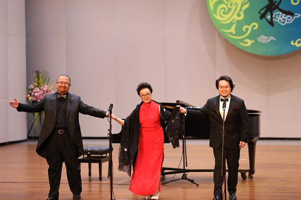 山光西落,池月東上,師生同臺,笙歌回響。5月17日晚,由浙江藝術(shù)職業(yè)學(xué)院主辦的胡素銀音樂大講堂《傳承》在浙江音樂廳舉行,這也是浙江藝術(shù)職業(yè)學(xué)院音樂系繼黃琦、趙俊師生音樂會之后推出的音樂表演優(yōu)勢專業(yè)教學(xué)成果的第三場集中展示。主講人胡素銀攜弟子陳芬芳、劉偉、葉雯、錢思舒、袁春、馮斯凡、陳愛菊、胡韻等,通過“大講堂”形式講述自己的聲樂教育理念和經(jīng)歷,邊講邊唱,歌聲繚繞,沉醉了夜晚。