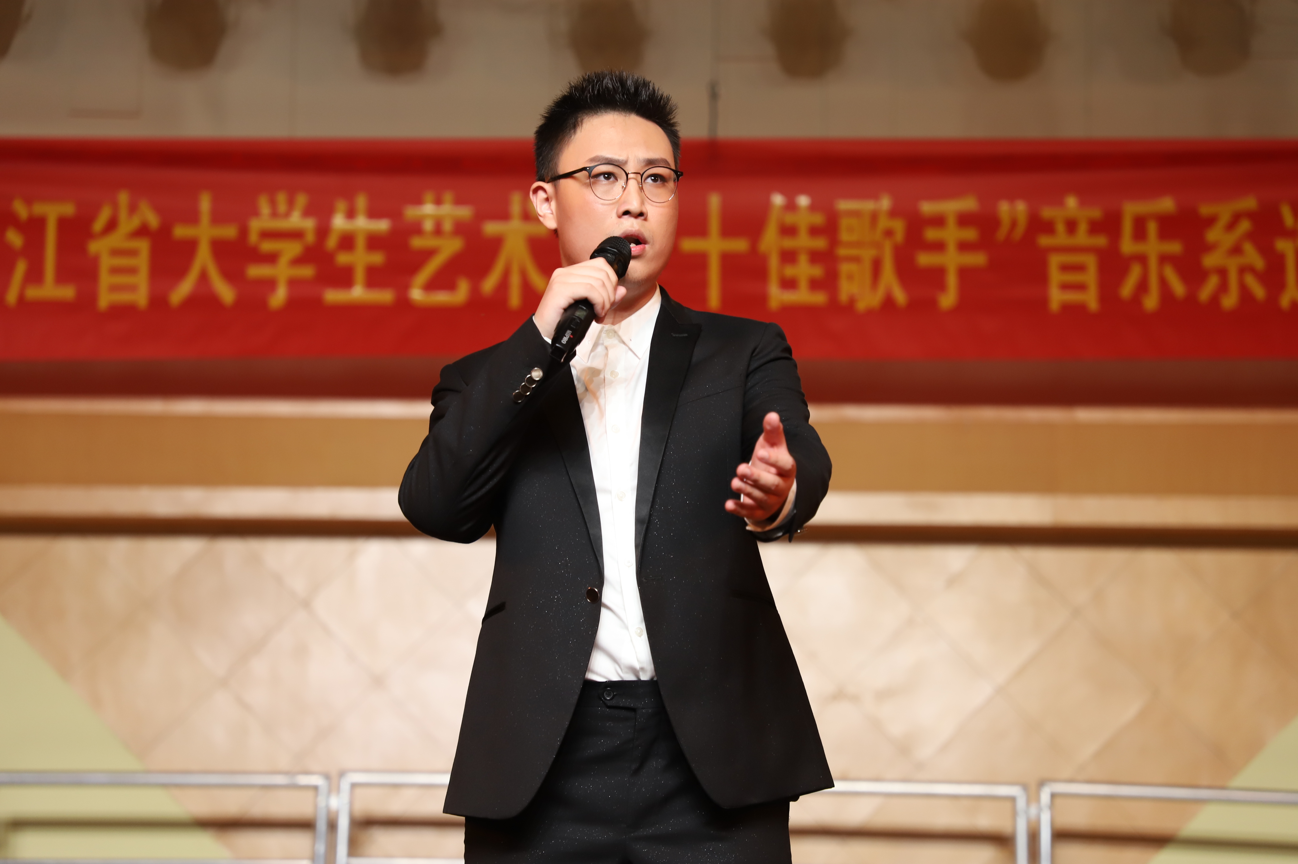 2018年浙江省大學生藝術(shù)節(jié)“十佳歌手”音樂系選拔賽昨晚在我系舉行。音樂系特別邀請了浙江音樂學院聲歌系主任王維平教授、浙江省聲樂專業(yè)委員會副主任劉全來老師、浙江省教育廳藝術(shù)教育委員會秘書長魯曉虹老師、浙江師范大學、浙江外國語學院藝術(shù)學院兩任院長關(guān)韶華教授、浙江音樂學院聲樂教師楊孜孜教授、浙江省聲樂專業(yè)委員會副主任曹強老師作為評委,為選手進行了細致的點評。
