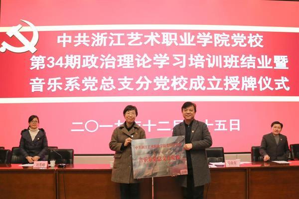 12月25日晚,黨校第34期培訓(xùn)班結(jié)業(yè)暨音樂系黨總支黨校成立授牌儀式在學(xué)校圖信報告廳舉行。校黨委書記朱海閔為音樂系黨總支分黨校授牌,并祝賀音樂系黨總支分黨校成立。校黨委委員、黨委宣傳部部長馬向東主持儀式并宣讀批復(fù)。音樂系黨政班子成員、組織員、學(xué)生支部書記、34期黨校學(xué)員等參加。