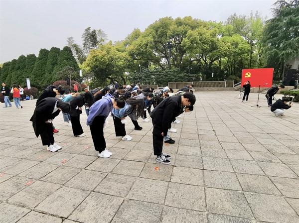 師生們仰望著紀(jì)念碑,懷著崇敬的心情繞墓一圈,并把親手制作的小白花獻給先烈們。并一同參觀了浙江革命烈士館展館,了解先烈們的英勇事跡,感悟當(dāng)今來之不易的美好生活。
