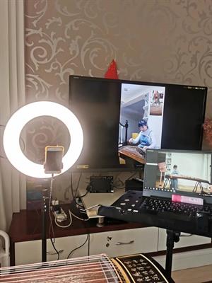 浙藝音樂系教師夏金甌所授的課程是古箏,因?yàn)橐魳奉悓I(yè)對(duì)聲音的要求很高,她反復(fù)嘗試了微信、QQ、騰訊會(huì)議等軟件,發(fā)現(xiàn)視頻時(shí)音質(zhì)都有受損,追求完美的她,經(jīng)過不懈努力,終于找到了一款適合教學(xué)的軟件,叫“一起練琴”,這個(gè)軟件聲音還原度很高,她說,這樣就可以聽見學(xué)生們彈奏的每一個(gè)細(xì)節(jié)。