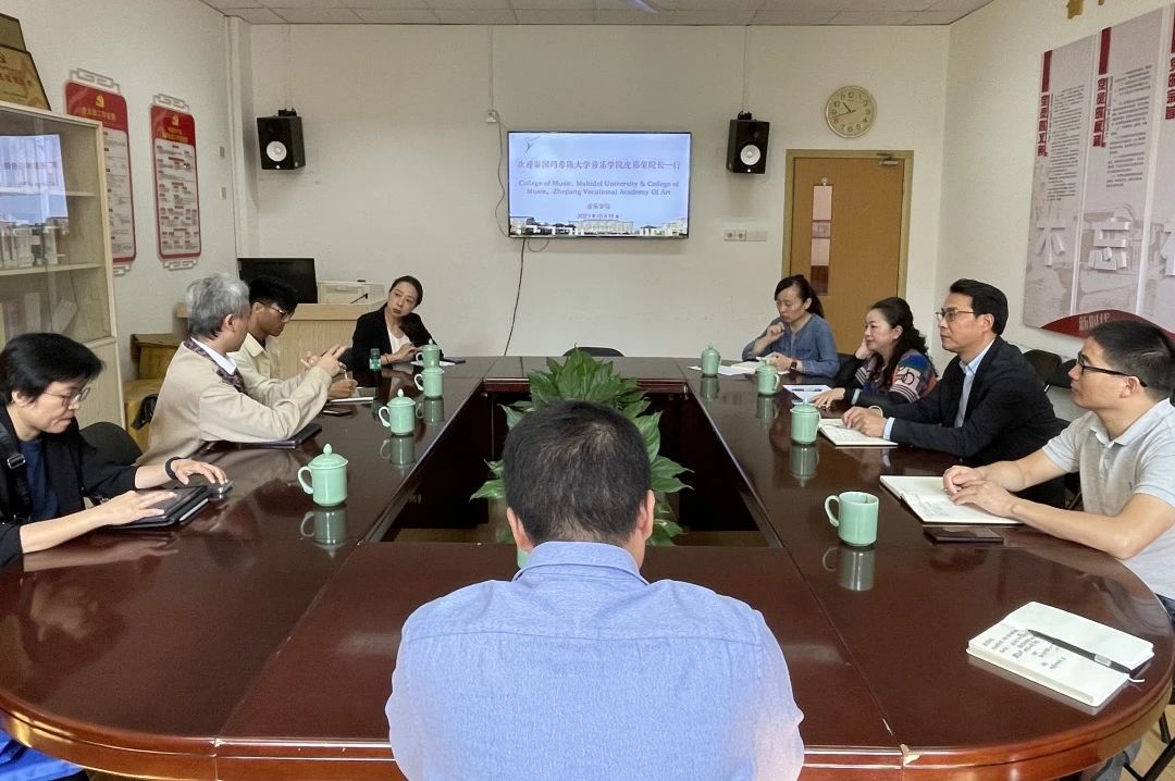 10月15日,泰國瑪希隆大學(xué)音樂學(xué)院龐那榮院長一行來音樂學(xué)院開展交流。學(xué)院領(lǐng)導(dǎo)班子,辦公室、青年教師代表陪同交流。