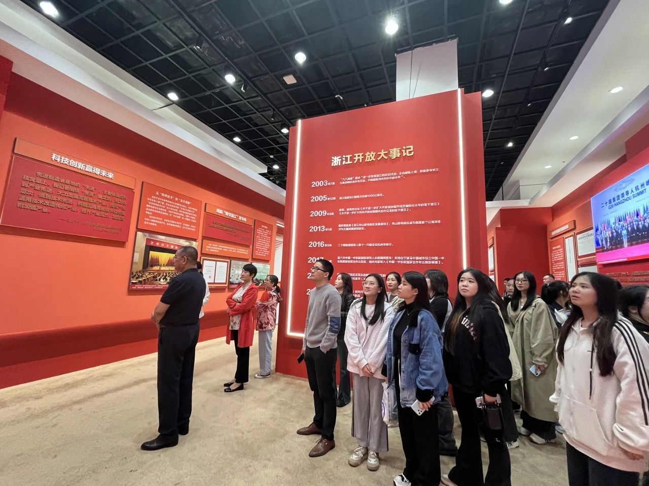 在4500平方米的展區(qū)里,全體師生通過一張張照片、一件件展品,數(shù)據(jù)的對比,視頻的回望,沉浸式地感受浙江在“八八戰(zhàn)略”指引下20年的發(fā)展歷程。從破繭而出,到精彩蝶變,時任浙江省委書記習近平同志在廣泛深入調(diào)研的基礎上,作出發(fā)揮“八個方面優(yōu)勢”、推進“八個方面舉措”的重大決策部署。這些拓路開山的先行探索,打開了浙江高質(zhì)量發(fā)展的新通道,成為推動浙江發(fā)展的深厚動力,為今天的大國治理提供了寶貴經(jīng)驗和實踐基礎,為習近平新時代中國特色社會主義思想的形成與發(fā)展提供了豐富的理論和實踐基礎。