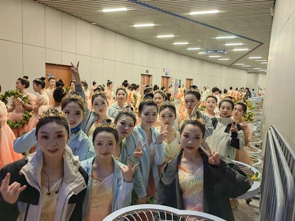 本次開幕式由金桂為主要元素,通過科技手段打造了一個(gè)愛的舞臺(tái)。而我院32位同學(xué)們有幸參與這次連接亞洲的盛大演出,在包括第一篇章《心相約》、第三篇章《夢閃耀》和主題曲《我的深情為你守候》等節(jié)目中扮演金桂少女。”
