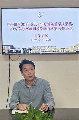 為了以立德樹人為根本任務(wù),著力打造高素質(zhì)“雙師型”師資隊伍,在推進“三全育人”、深化課程思政、落實育訓并舉、加快“三教”改革等新形勢新要求下,音樂學院于2023年10月26日上午,在3101會議室召開“2023-2024年度校級教學成果獎申報、教師教學能力比賽專題工作部署會”,學院領(lǐng)導班子及辦公室相關(guān)教學管理人員參加本次專題會議。