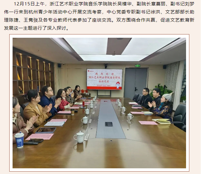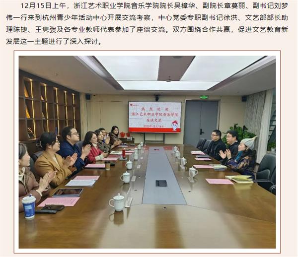 浙藝音樂學(xué)院吳樟華院長一行赴杭州青少年活動中心開展交流座談