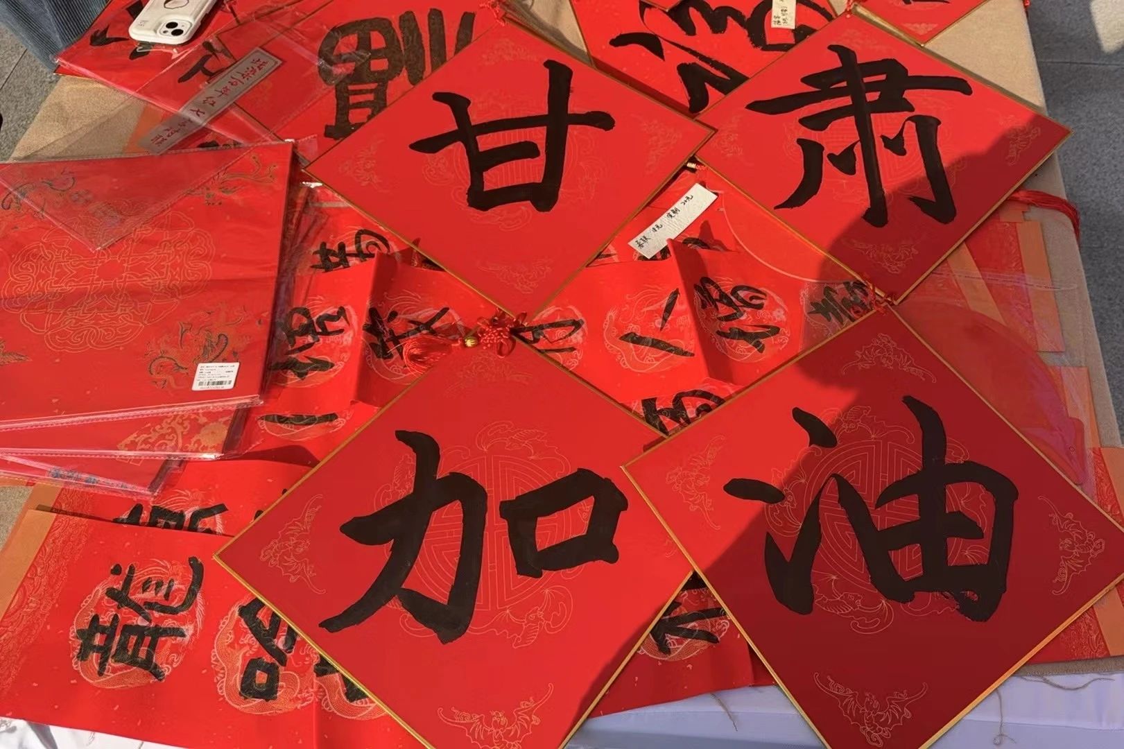 恰逢手工藝學(xué)院的新年手工藝市集開展。活動還得到了手工藝學(xué)院老師與同學(xué)的大力支持,我們與他們一起喊出了“甘肅加油”。
