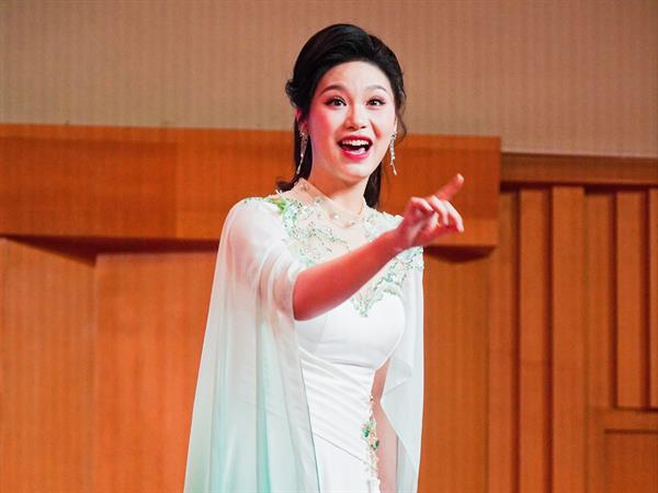 聲樂賽場,9組選手的參賽曲目含美聲、民族、流行三種唱法,既有經(jīng)典歌劇中的唱段,也有國產(chǎn)音樂劇中的著名選曲和近年來新創(chuàng)作的深受大眾喜愛的優(yōu)秀聲樂作品,多重聲樂藝術(shù)曲風(fēng)作品在同一個(gè)舞臺(tái)上齊綻放,選手們的歌聲在經(jīng)典與現(xiàn)代中穿行,絢爛又多姿。來自浙江藝術(shù)職業(yè)學(xué)院由音樂學(xué)院副院長章蔓麗教授指導(dǎo)的周俐彤同學(xué)憑借《摘菜調(diào)》《生死與黨心相連》兩首高難度作品(藝術(shù)指導(dǎo):楊霖希)獲得總分95.97的好成績,一舉奪得聲樂組第一名的好成績。